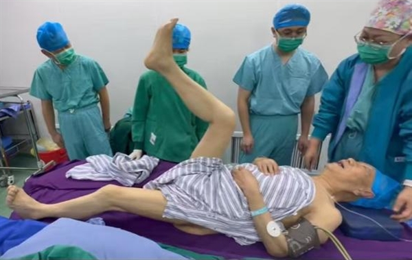 1. 局麻强化 + 侧卧位:让身体负担降到最低。老人被安置在舒适的侧卧位,减少呼吸压力;全程采用局麻加强化麻醉,避免全麻可能带来的心肺风险。