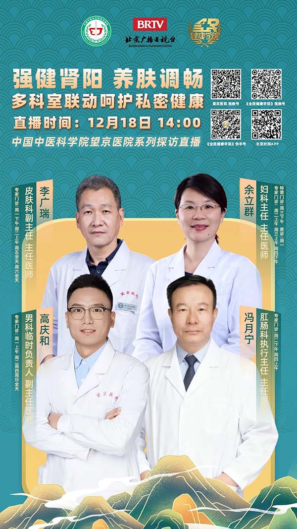12月18日 14:00直播︱强健肾阳 养肤调畅 呵护私密健康——望京医院携手北京广播电视台《全民健康学院》带来杏林探访第十期