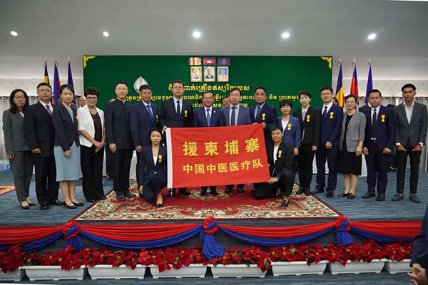 2024年6月,柬埔寨卫生部授予中国中医科学院广安门医院援柬埔寨中国中医医疗队队员柬埔寨王国莫尼萨拉蓬勋章。(中国中医科学院广安门医院供图)