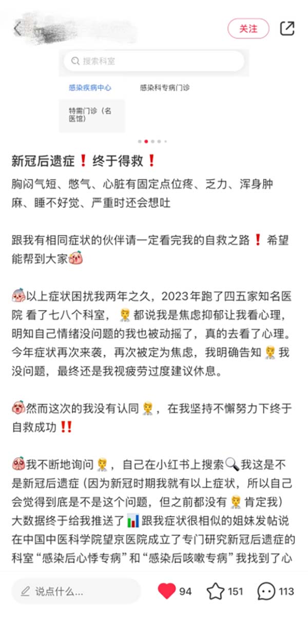 感染后疲劳综合征,是指患者在感染(如新冠病毒、流感等)后,持续出现显著疲劳、心悸、气短等一系列身心症状,且常规检查往往未见明显器质性病变。这类症状常迁延不愈,严重影响日常生活与工作,是“长新冠”或感染后恢复期的常见表现。