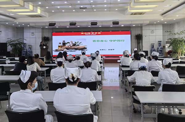 活动现场,来自北京市成人按摩职业技能培训学校的高级芳香治疗师许亚平首先讲解了芳香疗法的基本原理及常见精油(如薰衣草、甜橙、薄荷等)在情绪调节、缓解疲劳方面的作用。在随后的体验环节,医护人员学习了头肩部芳香按摩手法,并通过嗅吸、香薰等方式感受植物香气的疗愈力量。