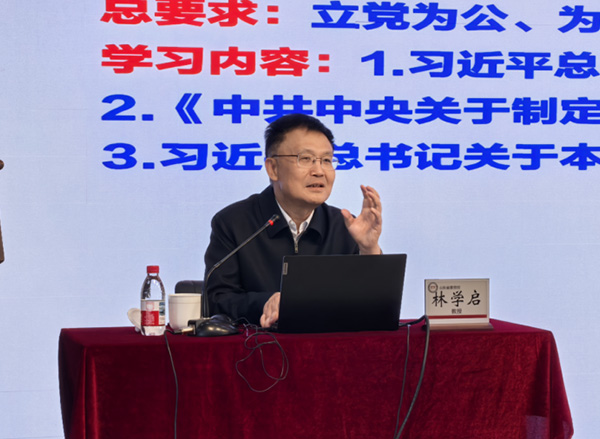 林学启教授长期从事习近平新时代中国特色社会主义思想、党史党建领域教学研究,有着深厚理论功底和丰富实践经验。党课上,林教授紧扣主题,围绕 “政绩为谁而树、树什么样的政绩、靠什么树政绩” 核心问题,从正确政绩观的理论渊源、核心要义、实践要求等层面,结合鲜活案例,系统阐释了树立和践行正确政绩观的重大意义。他强调,医疗卫生事业关乎民生福祉,必须始终把为民造福作为最大政绩,坚决摒弃重形式轻实效、重短期轻长远的错误倾向,以 “功成不必在我” 的境界和 “功成必定有我” 的担当,深耕医疗主业、提升服务能力,切实守护人民群众生命健康。党课内容既有理论高度,又贴合医院工作实际,深入浅出,为全院干部职工校准了思想坐标、明晰了行动方向。