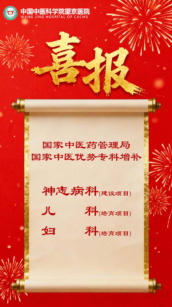 【望京丨喜报】望京医院神志病科、妇科、儿科获批国家中医药管理局 “国家中医优势专科”