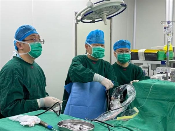 3.张世民主任手术团队。主刀医生张世民主任身边站立的助手中有主管医师靳蛟博士、以及助手陈春博士。这些年轻医师已从理论学习走向临床核心实践。