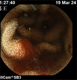 一位心内科69岁的男性患者,新发心梗,目前正在双抗治疗中,突然出现黑便,且检查血红蛋白逐渐下降,基于患者心功能情况,及目前双抗治疗,无法做普通胃肠镜,于是行胶囊内镜检查,经检查明确诊断为胃出血、小肠出血,为下一步治疗提供了有力的依据。