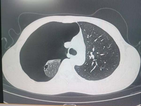此两例患者一例为18岁在校大学生、另一例为25岁公司白领,均于运动后感胸闷胸痛,伴呼吸困难。至我院外科急诊就诊,胸CT检查示:气胸,肺大泡。收住院后,外科团队在手术室麻醉科的全力配合下,为患者成功行胸腔镜下肺楔形切除术,术后患者顺利出院,尽快回归到学习工作中。