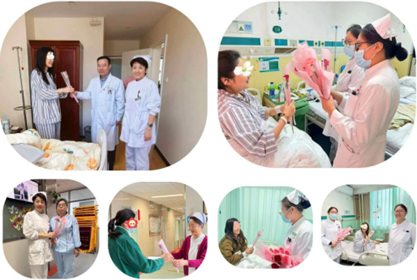 一支鲜花,一份心意。3月6日上午,在冯月宁主任的带领下,医护人员将一朵朵饱含祝福的康乃馨送到女患者手中。鲜艳的花朵、清新的芬芳,满载着关爱,传递着祝福,瞬间让整洁的病房多了几分温馨与生机。冯主任一边送鲜花还不忘亲切的叮嘱患者多活动,早睡觉。暖暖的话语,温馨的举动感动着每一位患者。护士长不仅为患者送上鲜花还心系科室第三方的师傅们,感谢她们辛苦的付出,与医护携手并肩守护着这个大家庭。